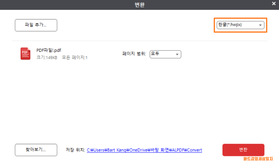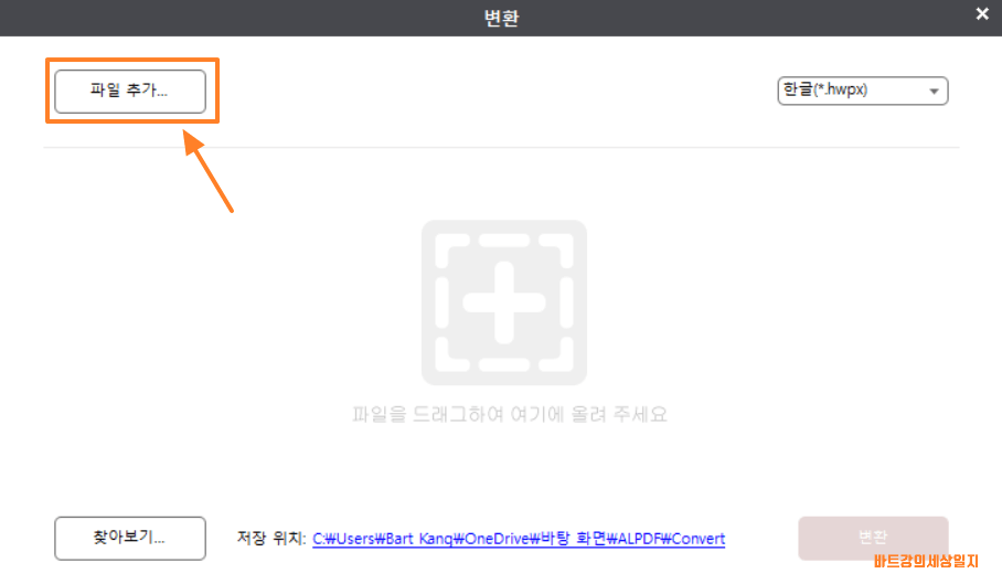 그 다음으로는 파일 추가 메뉴를 클릭해서 변환하시고자하는 PDF파일을 알PDF에 추가해주시면 되는데요! 사진과 함께보시면 어렵지 않으시죠?