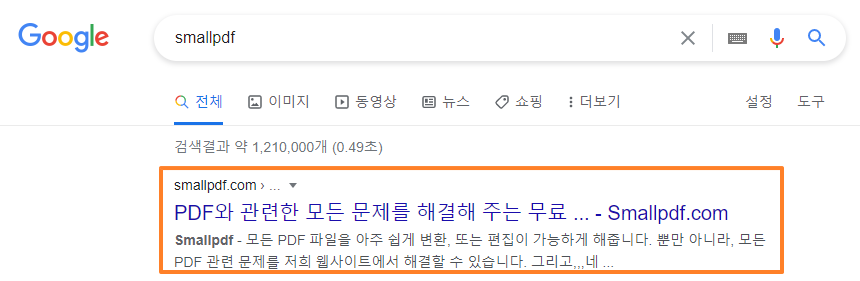 먼저 구글 혹은 다음에 SmallPDF라고 검색하시면 가장 상위에 나오는 SmallPDF사이트가 있으실겁니다. 해당 링크를 통해 SmallPDF 사이트에 들어가줍니다.
