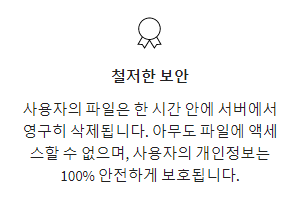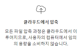 뿐만 아니라 아래 사진처럼 아주 직관적이고 간단한 PDF 압축 기능을 제공하고 있고, 저희가 압축하는 파일은 따로 저장되지 않고 영구 삭제됩니다. 뿐만 아니라, 파일 크기가 줄어도 품질은 유지되며 클라우드에서 압축되기 때문에 사용자의 용량을 소비하지 않는다는 점도 눈에 띕니다!👀