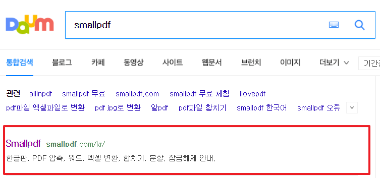 위에 보이시는 것처럼 SmallPDF라고 다음에 검색하시면 가장 상단에 SmallPDF 홈페이지가 안내되는데요! 다양한 기능을 제공하는 SmallPDF임을 알 수 있습니다.