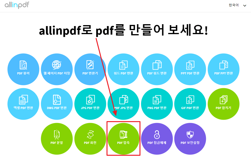 2. AllinPDF 홈페이지에서 PDF 압축 메뉴를 클릭해주세요!