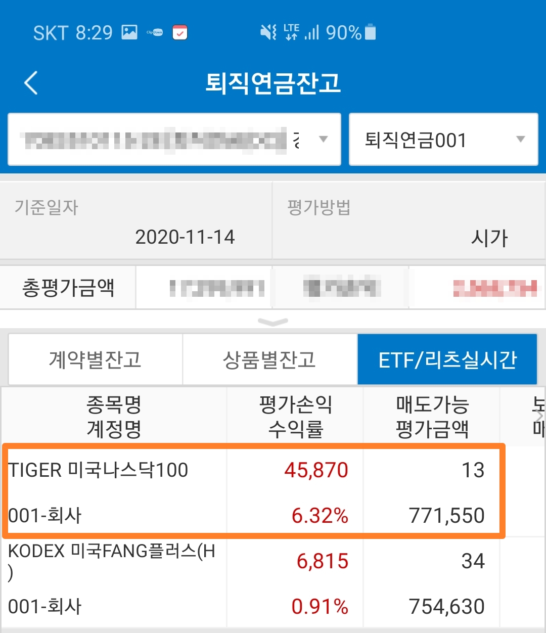 DC형 삼성증권을 통해 TIGER 미국 나스닥 100 ETF를 투자하고 있는데요!