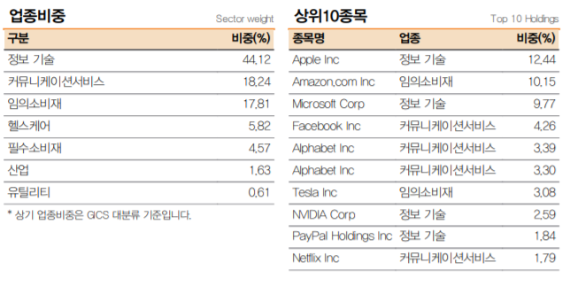 기본적으로 기술주들이 대부분을 구성하고 있는 것을 알 수 있습니다.