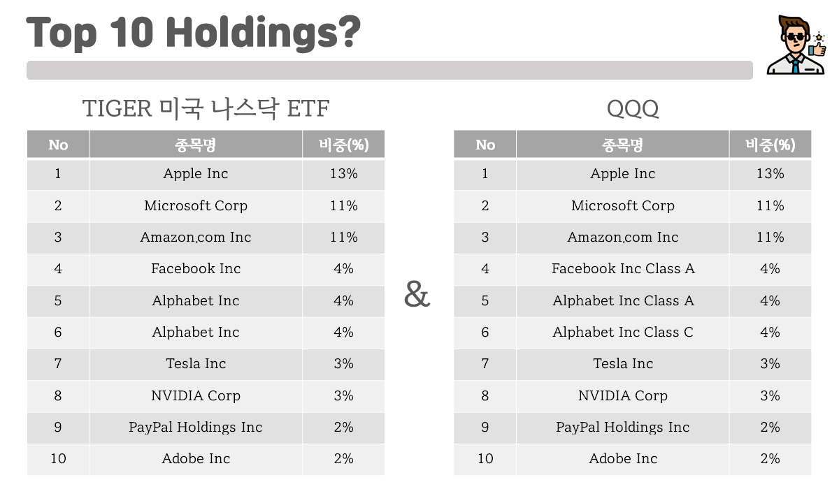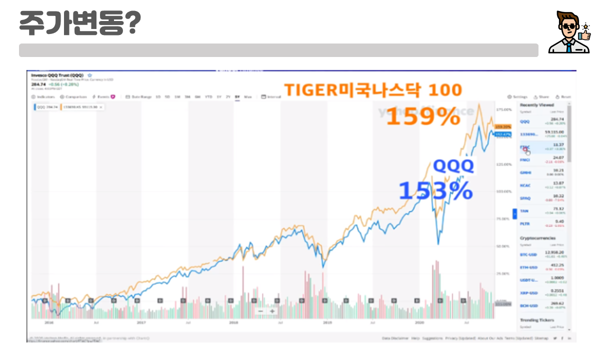 그럼, 미국 현지 나스닥 100 ETF인 QQQ와 TIGER 미국 나스닥 100은