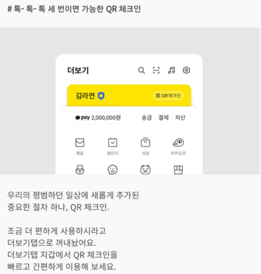 오늘은 카톡의 다양한 기능 중 하나인 카톡 QR체크인에 대해 알아보았는데요! 워낙 요즘 시국이 시국인지라 QR코드 체크인을 많이 해야되는만큼 미리 카톡 QR코드 흔들기 기능을 활성화시켜서 편하게 QR체크인 진행하시길 바라겠습니다.