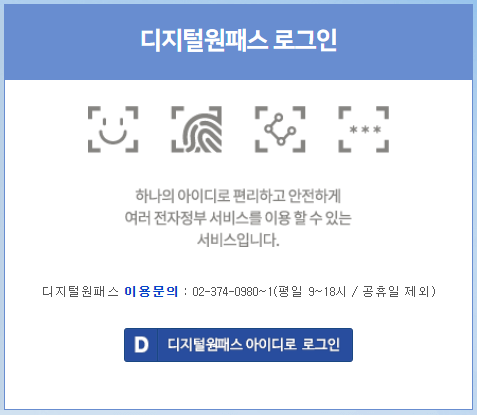 이파인 교통민원 24에서는 디지털원패스 로그인 서비스도 제공하고 있더라구요! 혹시나 공동인증서나 공인인증서 로그인이 힘드신 분들은 디지털원패스 로그인을 이용해보시는 것도 방법일 수 있겠습니다.