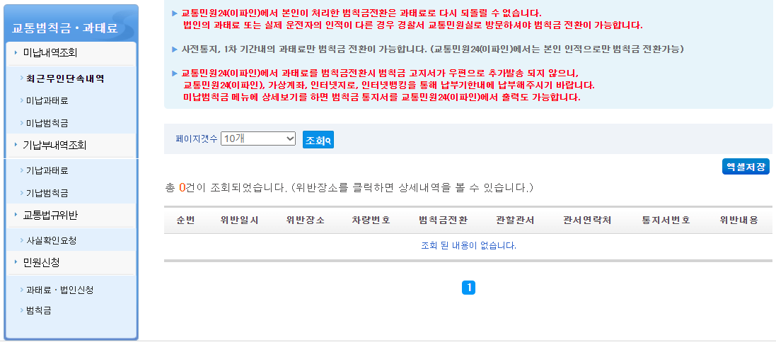 ✅ 공동인증서, 공인인증서 로그인을 하고 나면 아래와 같이 내 최근무인단속내역이 나타나는데요! 저는 다행히 아직까지 속도위반이나 신호위반 단속 이력은 없는 것으로 보이네요!👏