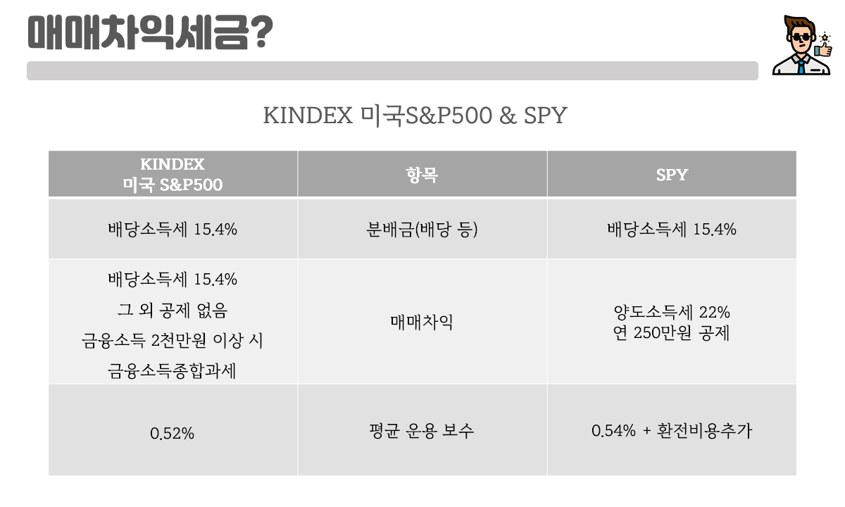 물론 두 ETF의 성격(세제 혜택 및 각종 수수료 등)이 많이 다른 것은 사실이지만