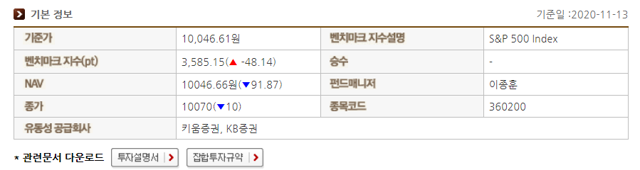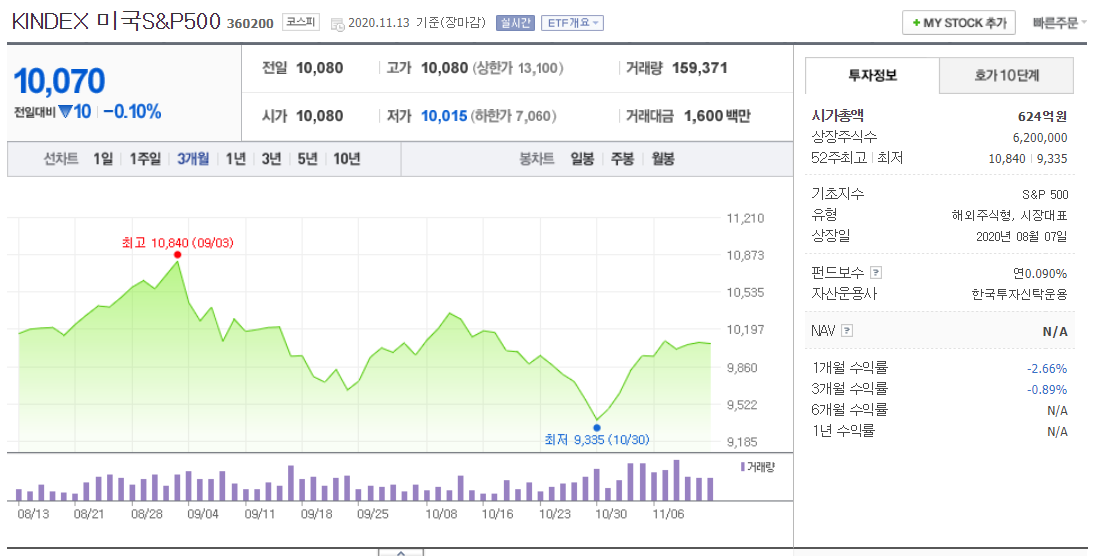 위 사진에서 볼 수 있듯, KINDEX 미국 S&P500 ETF 상품은