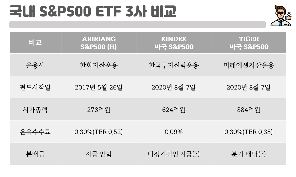 최근에 출시된 KINDEX 미국 S&P500과 TIGER 미국 S&P500에