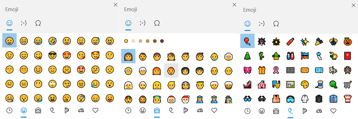 여기 보이시는 것 처럼 다양한 표정의 이모티콘을 윈도우10 이모지로