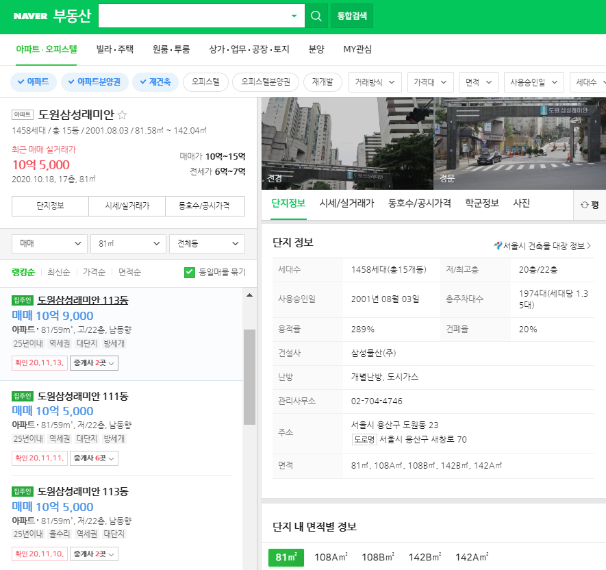 한번 용산구의 한 아파트의 시세가를 조사해보도록 할까요?🤔