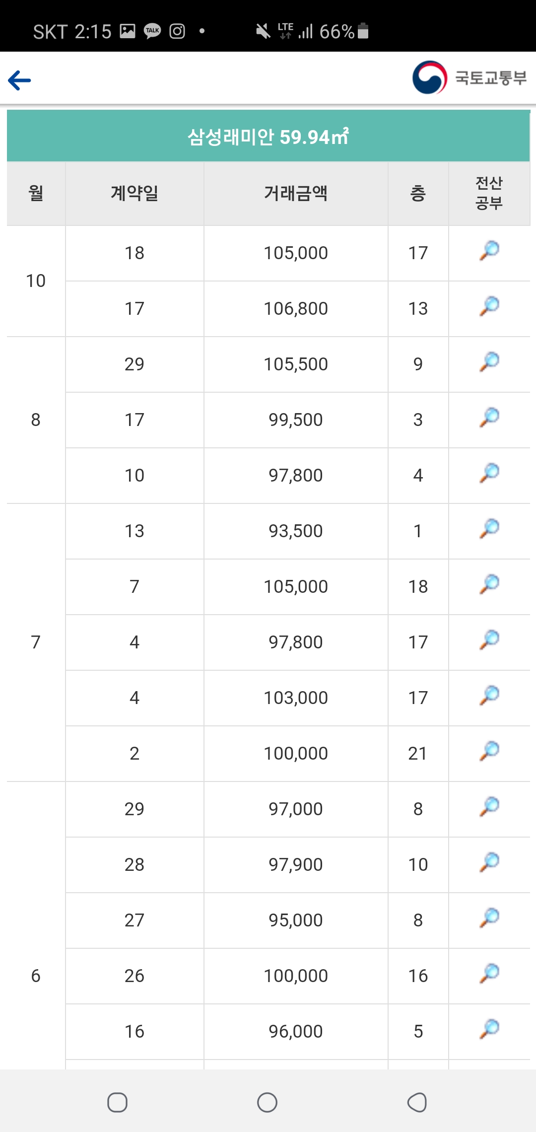 우측 사진과 같은 국토부 실거래정보를 체크할 수 있는