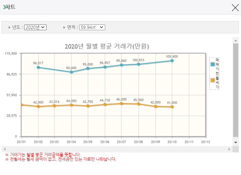 아파트를 클릭해주시면 바로 매매가가 나오고 추가로 전월세 가격 및 매매가 변동 차트를 확인하실 수 있습니다.