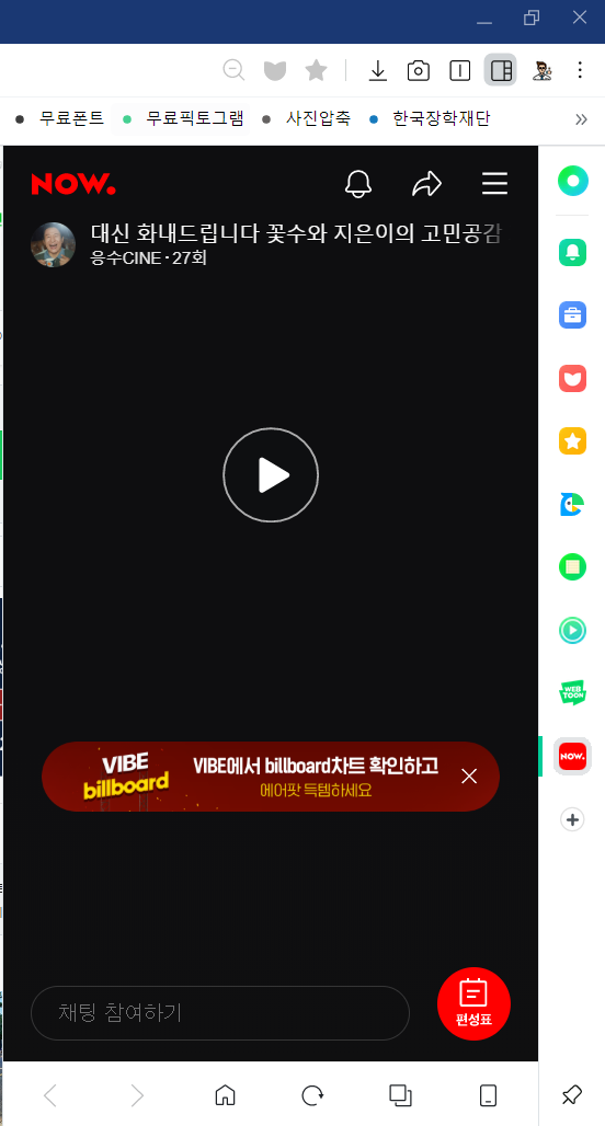 웹툰 메뉴 마지막으로 네이버의 생방송 플랫폼 나우까지