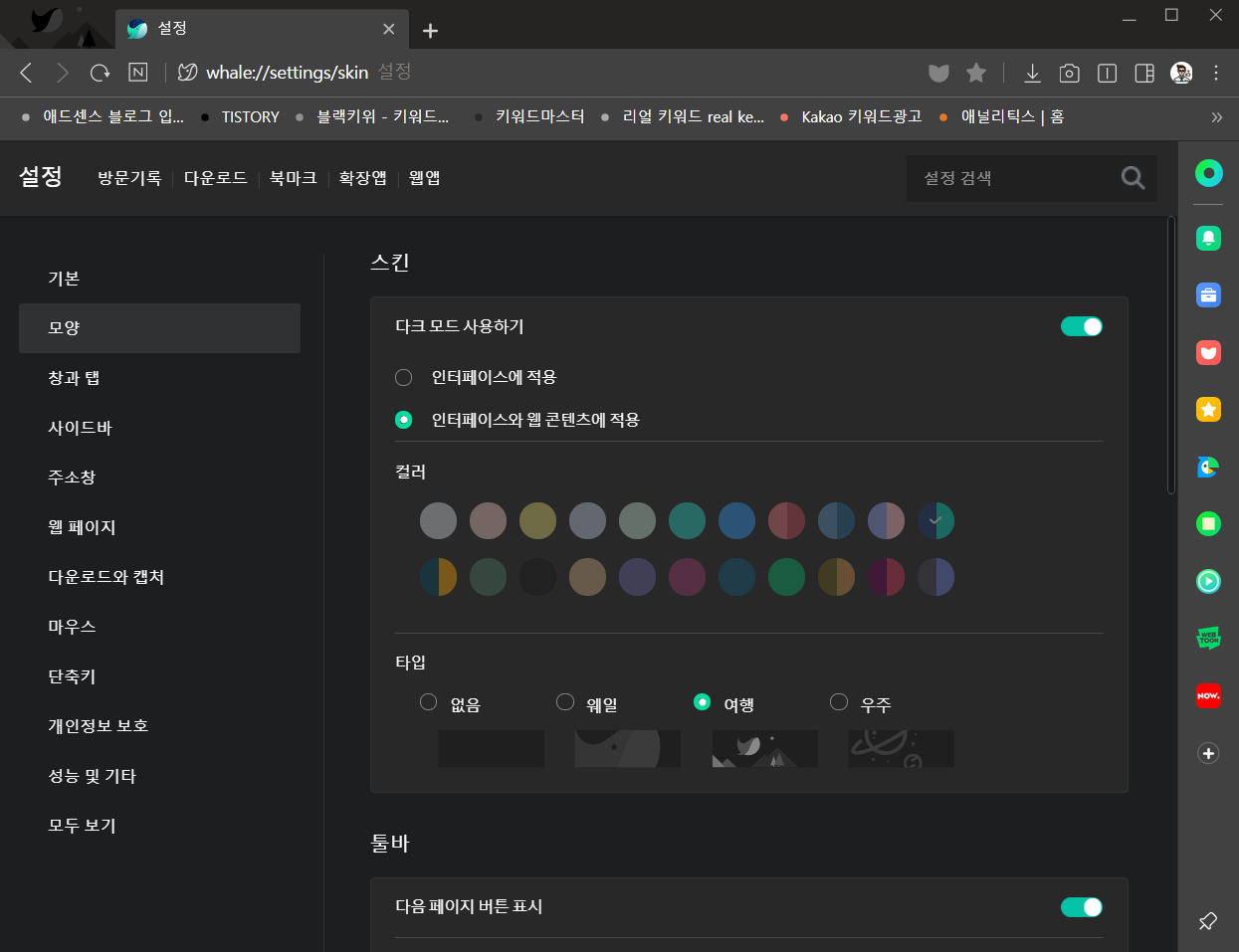 네이버 웨일 다크모드 설정법인데요!