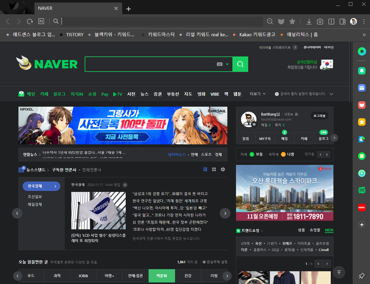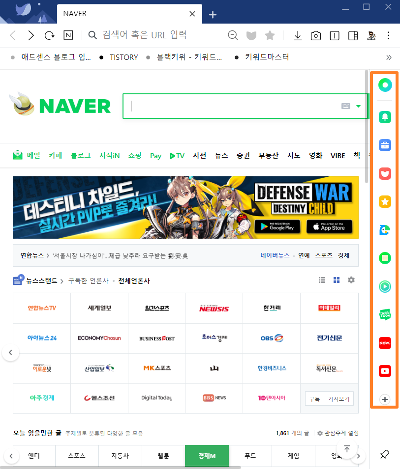 일단 아래 사진의 네이버 웨일 우측 패널을 확인해주시구요!👏