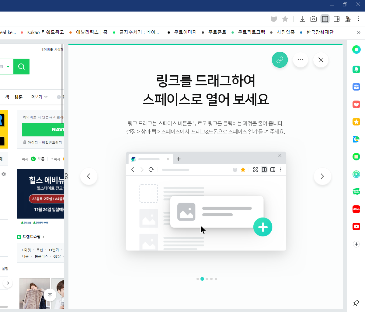 네이버 웨일의 또다른 기능 후술해서 설명해드리겠지만