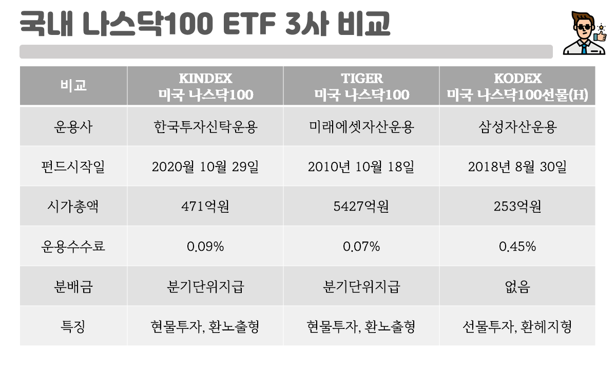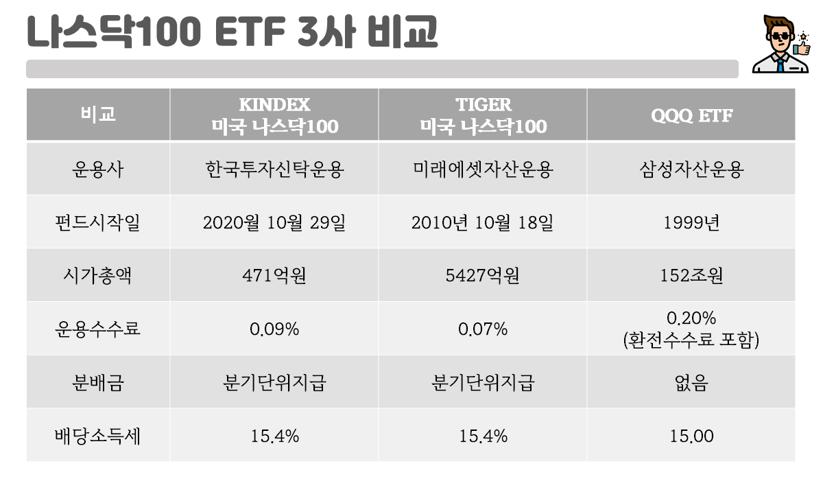 각종 미국 나스닥 100 추종 ETF와 비교분석 진행해보도록