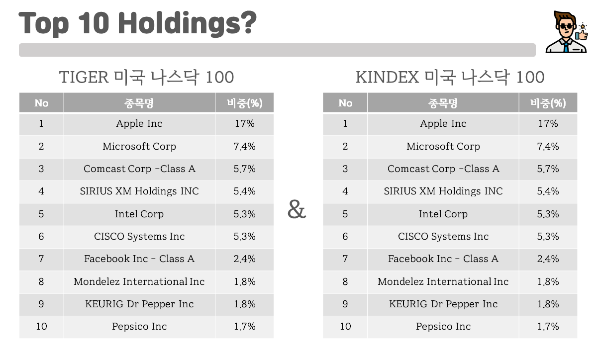 그렇다면 KINDEX 미국 나스닥100, QQQ, Tiger 미국 나스닥100의