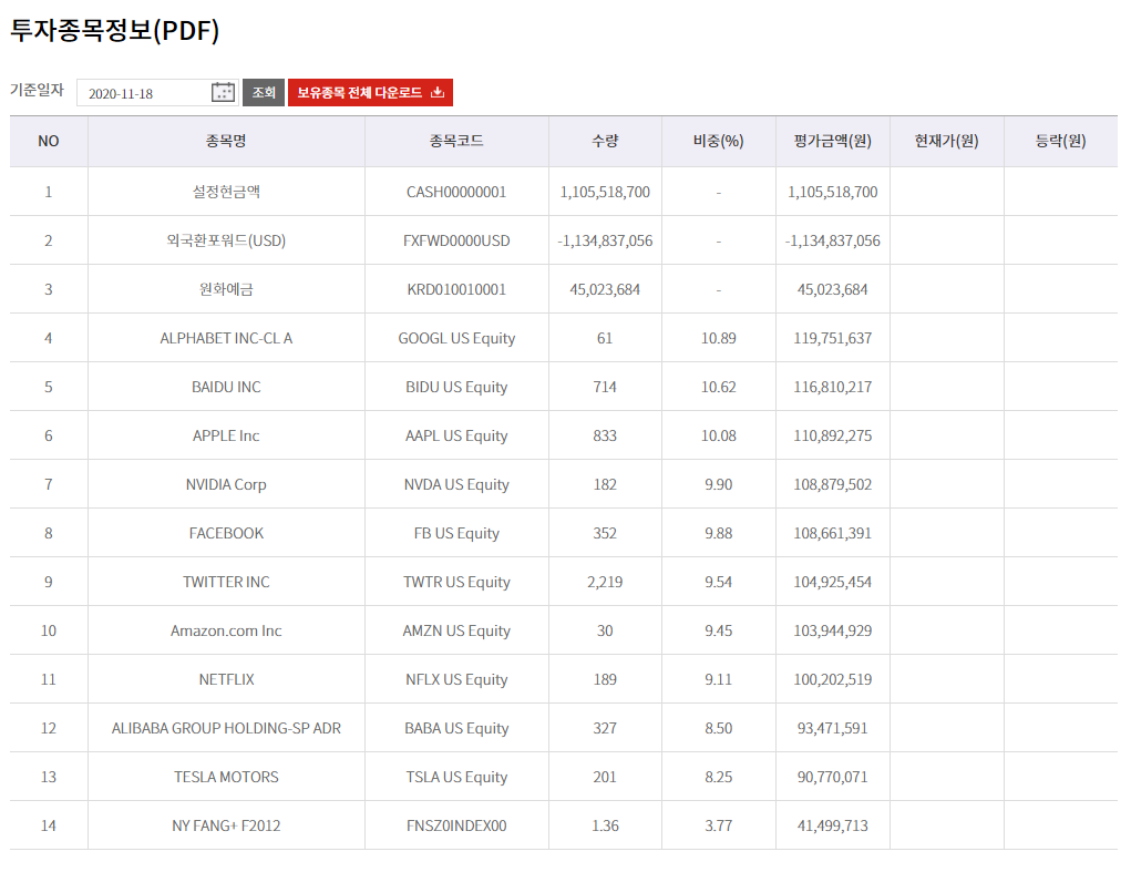 각 개별 종목의 구성에 차이가 어느정돈 있지만