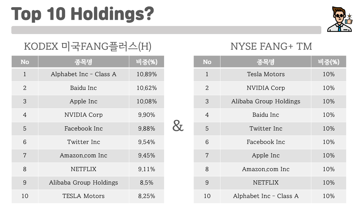 그렇다면, KODEX 미국FANG플러스(H)와 NYSE Fang+를