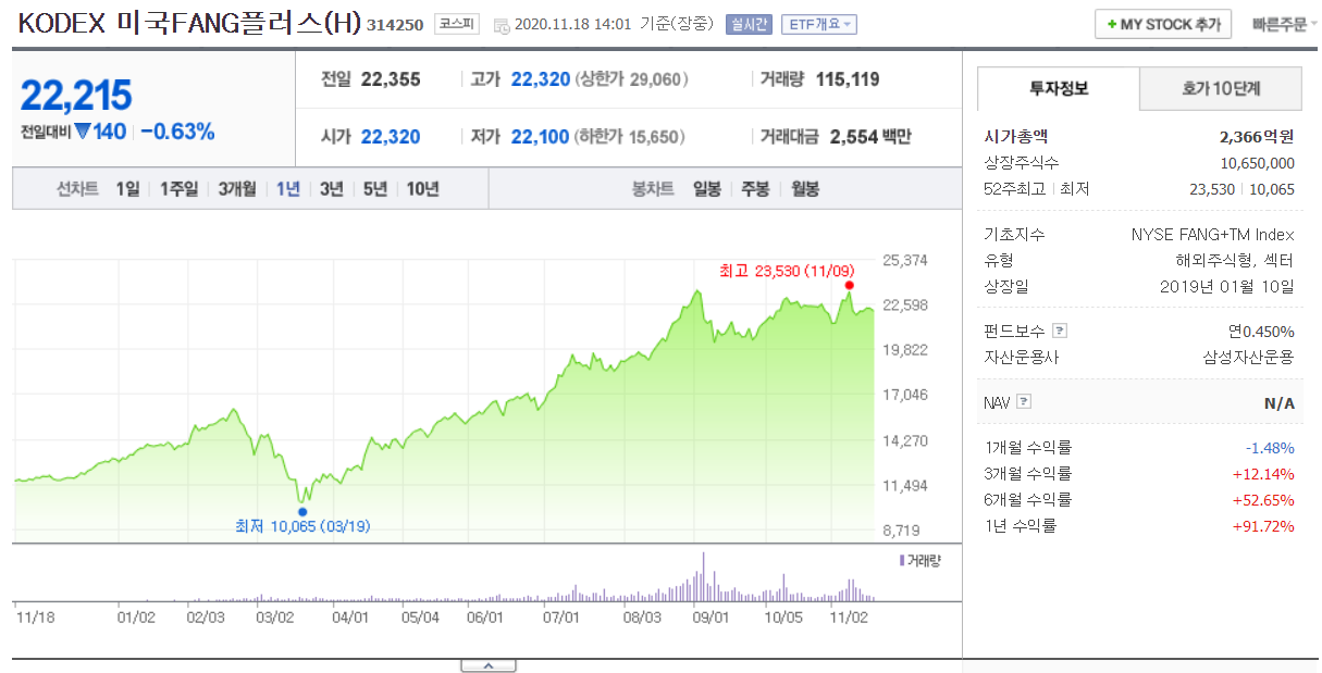 다만 KODEX 미국 FANG플러스(H)가 ETF상품이다보니