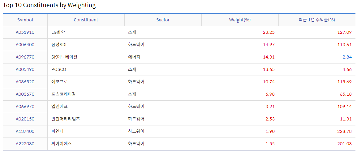 그렇다면, 이 KODEX 2차전지산업의 구성종목은 어떻게 될까요?