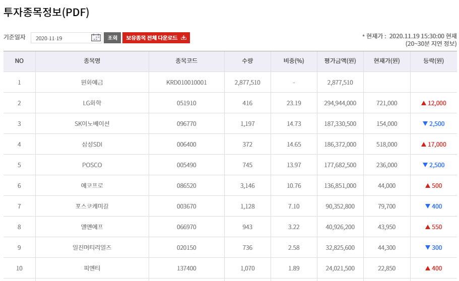 1등부터 10등까지의 개별 종목은 똑같습니다.