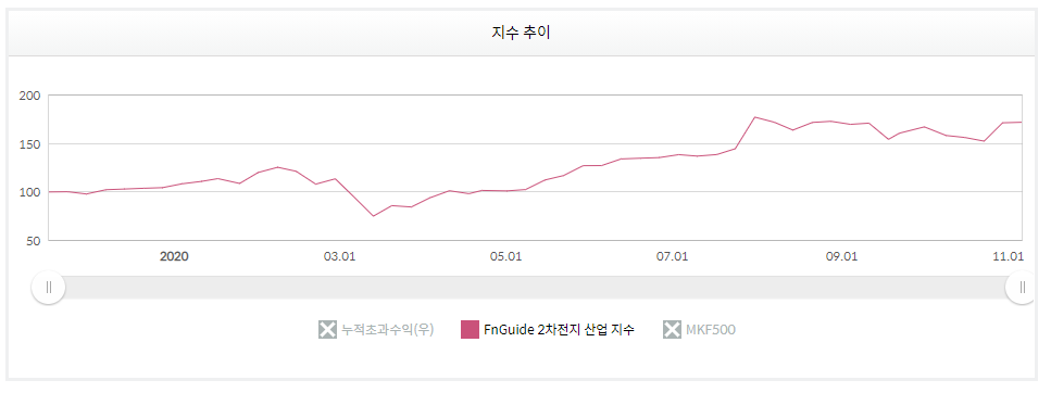 역시 기초 지수인 FNGuide 2차전지 산업지수와