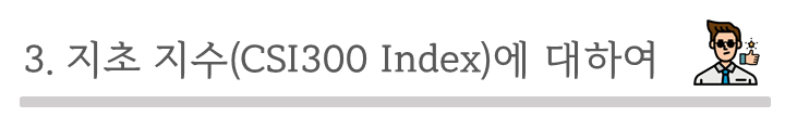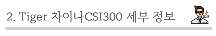 그럼 본격적으로, 이 기초지수에 대해 알아보고 Tiger 차이나CSI300의 기초지수 추종여부를 확인해보도록 할까요?