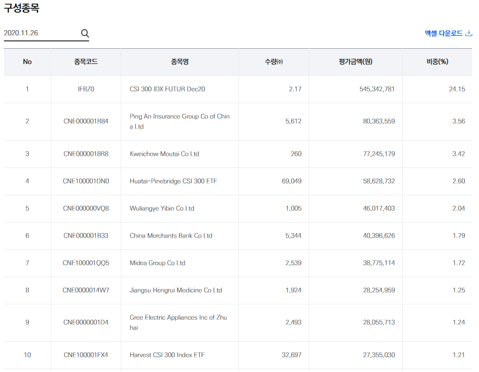 먼저, Tiger 차이나CSI300의 구성종목을 먼저 살펴보도록하겠습니다.🙌