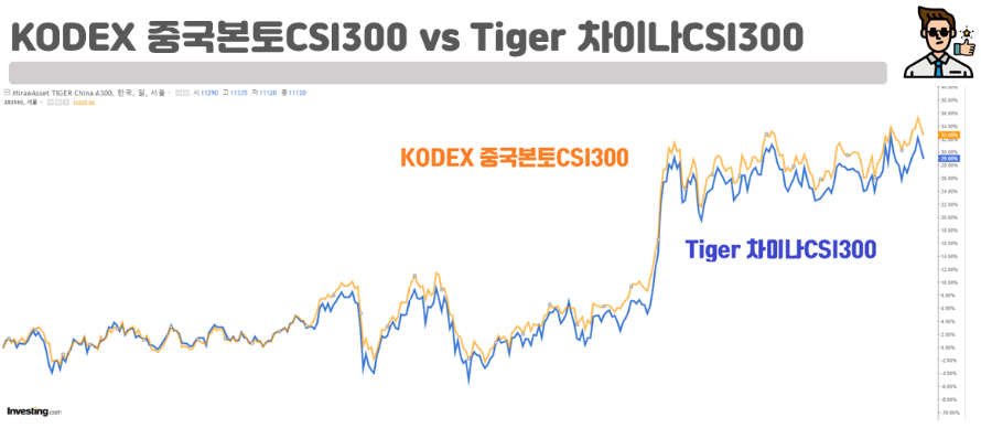 다음은, Tiger 차이나CSI300과 더불어 CSI300을 추종하는 다른 ETF를 한번 비교해볼건데요! 바로 KODEX 중국본토CSI300 ETF입니다. 이 둘은 어떤 차이가 있으며, 그동안 어떻게 성장해왔을까요?