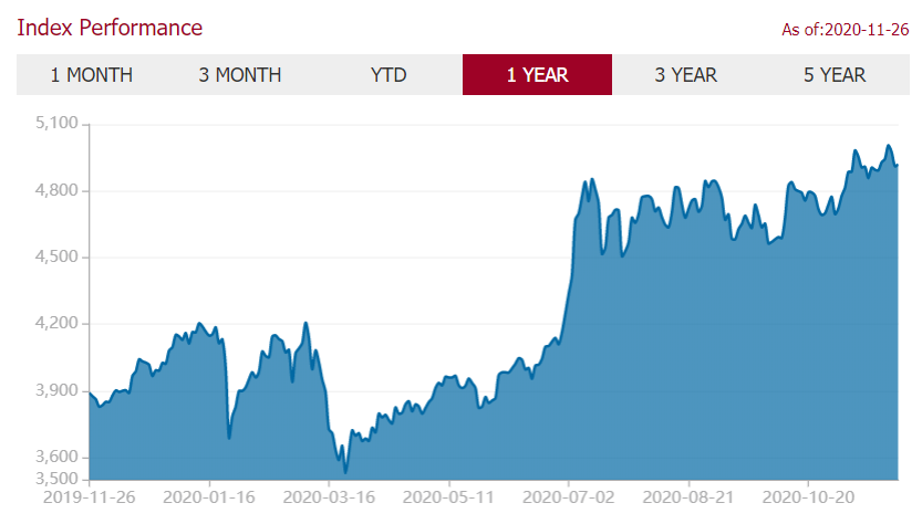 살펴보시면 아시겠지만, 미국의 주요 주가지수인 나스닥 혹은 S&P500만큼은 아니지만 비교적 우상향의 형태를 그리고 있음을 알 수 있습니다.