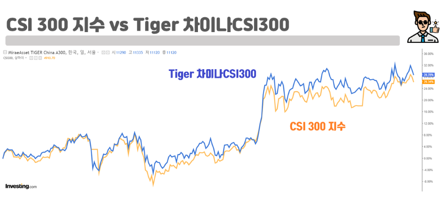 오늘은 중국에서 가장 유명한 지표인 CSI300을 추종하는 Tiger 차이나CSI300 ETF에 대해 기초지수와의 비교, 타 ETF와의 비교로 심층 분석을 한번 해보았는데요!