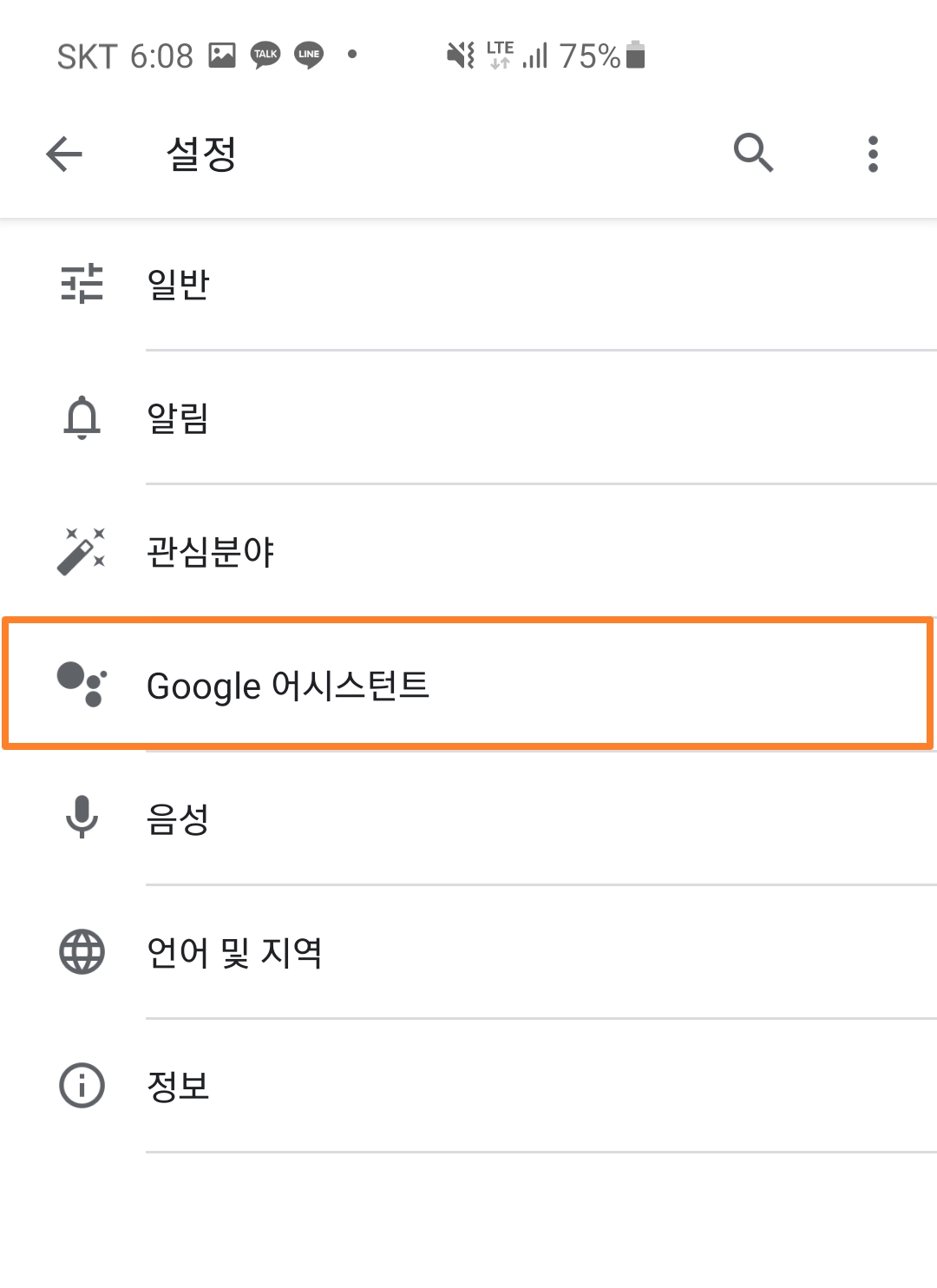 4. 저기 아래에서 두 번째 있는 '검색, 어시스턴트 및 Voice'라는 메뉴를 눌러주세요!