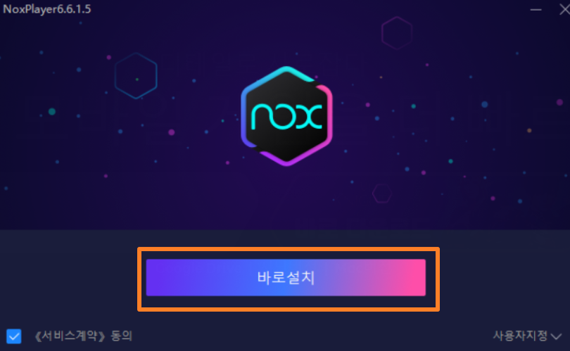 3. 바로설치 - 시작으로 녹스 앱플레이어 시작