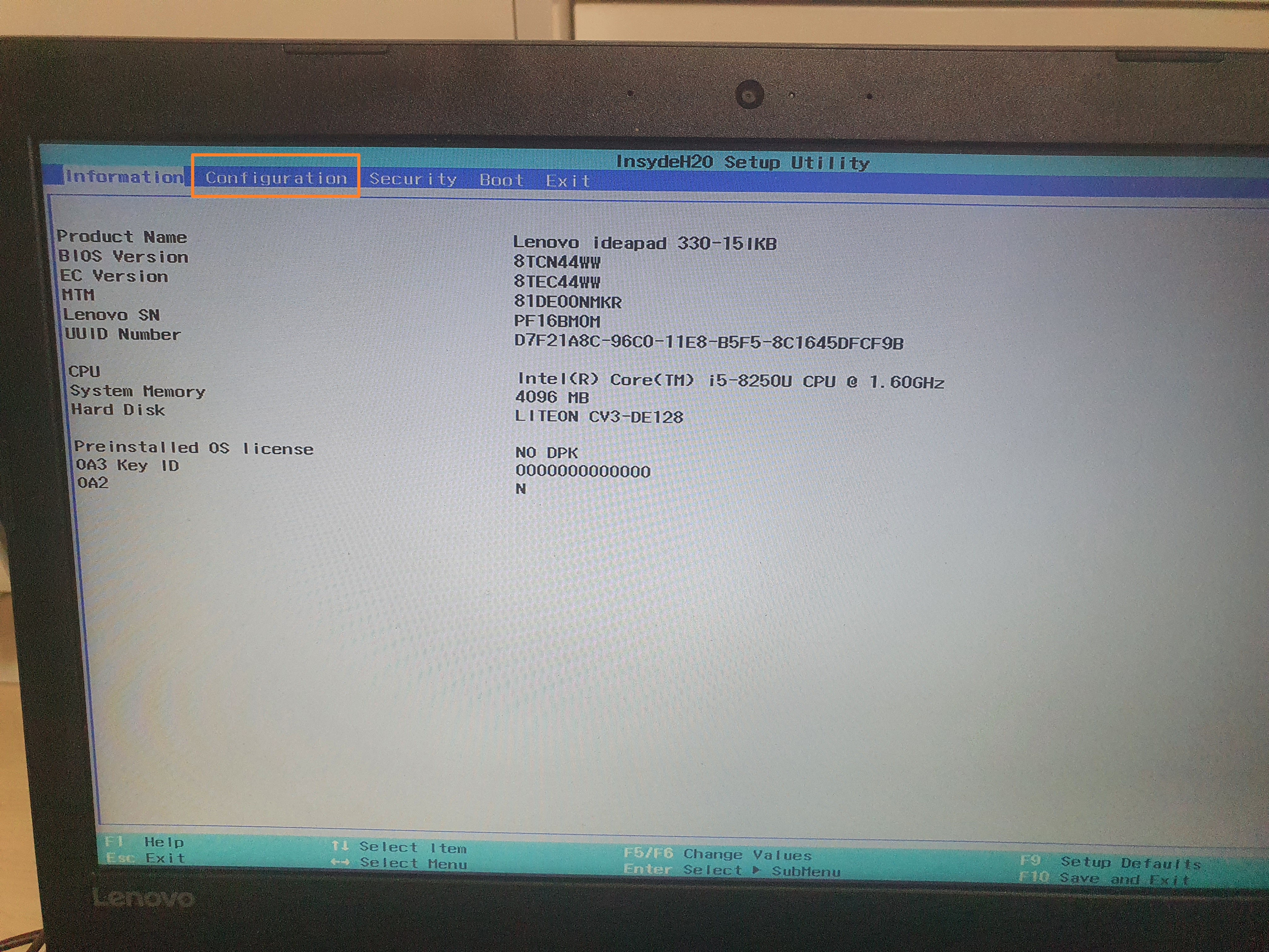 5. Setup Utility에서 Configuration 탭을 선택해주세요!