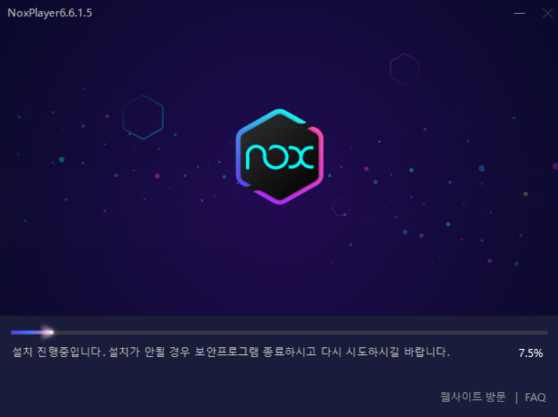 2. 순차적으로 바로설치 - 시작 을 통해 녹스 앱플레이어를 설치해주세요!