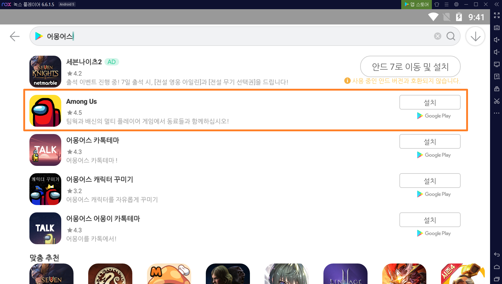 2. 저는 어몽어스를 다운받아보았는데요! 그 다음 원하시는 게임을 설치해주시면 되겠습니다!😊