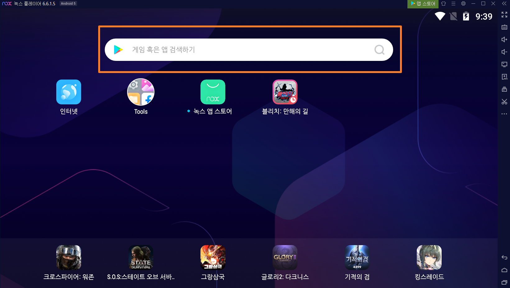 1. 녹스 앱플레이어 검색창에 원하는 모바일 게임 이름을 입력해주세요!