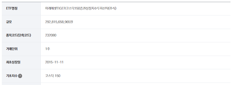 타이거 코스닥150은 기본적으로 코스닥150 지수를 추종하는 ETF로 코스닥에 상장되어 있는 상위 150개 기업들을 중심으로 구성된 ETF입니다. 기본적인 정보를 하나씩 안내해드리자면!