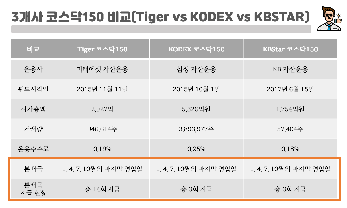 다음은 코스닥150을 추종하는 3개사를 전격 비교해보도록 하겠습니다.😎
