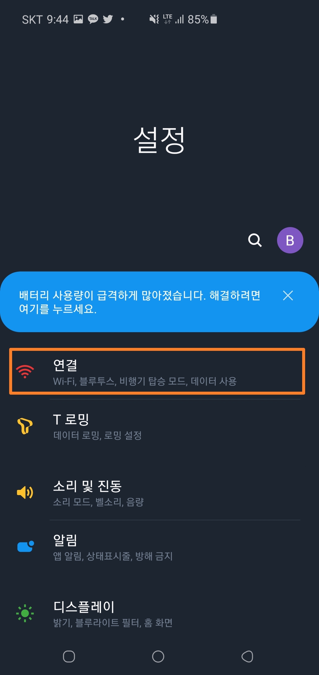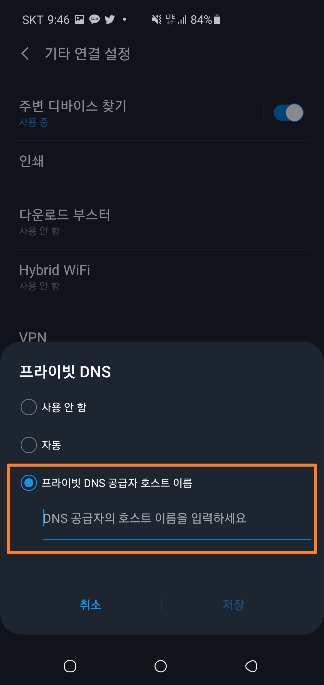 2. 기타 연결 설정 - 프라이빗 DNS를 클릭하여주세요!☝