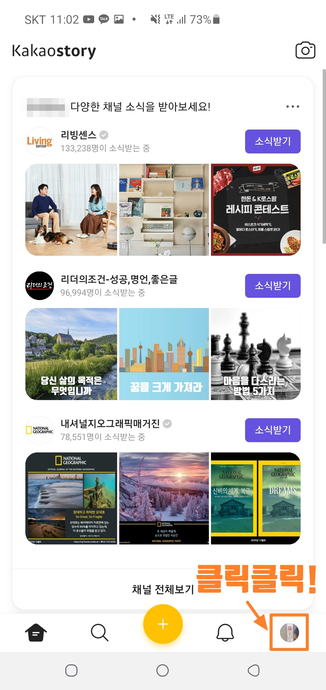 1. 카카오스토리 실행 - 프로필 클릭