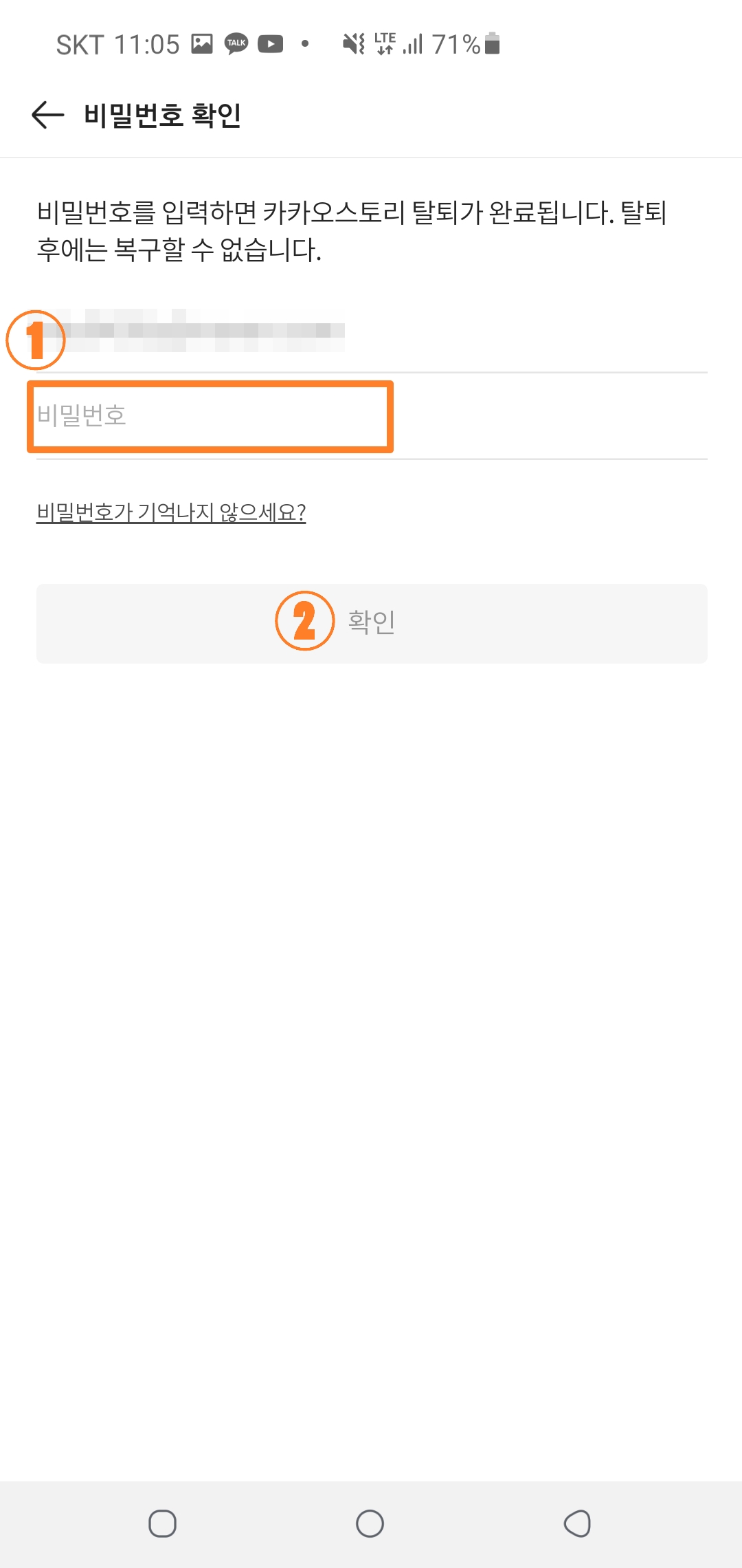 3. 순서대로 동의 - 비밀번호 입력 진행해주시면 카카오스토리 탈퇴가 완료됩니다!