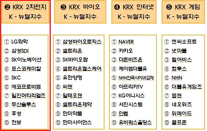 본격적으로 ETF에 대해 알아보기에 앞서 항상 기초지수를 살펴봐야한다는 사실! 여러분들 모두 알고 계시지요? 소개해드릴 KRX 2차전지 K-뉴딜 지수는 이번 한국판 뉴딜 정책이 시행됨에 따라 새롭게 등장한 테마지수입니다.🙏