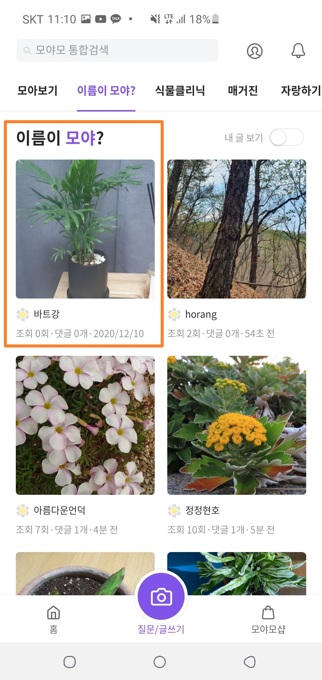 4. 마지막으로 사진을 올려주시면 아래 처럼 게시글로 제 질문이 올라와 있는 것을 확인할 수 있는데요!