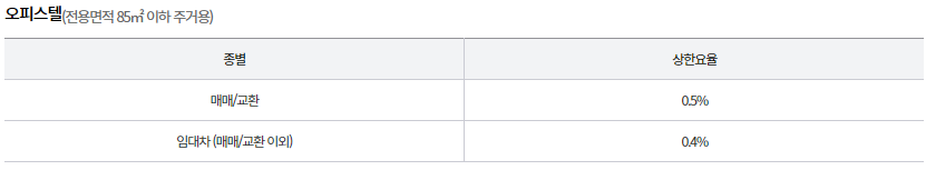 마찬가지로 오피스텔의 경우도 매매냐 임대차냐에 따라 부동산 중개수수료율표가 달라지게 되는데요! 위 상한요율을 참고하셔서 계약시에 수수료를 한번 더 확인해주시기 바랍니다.😊