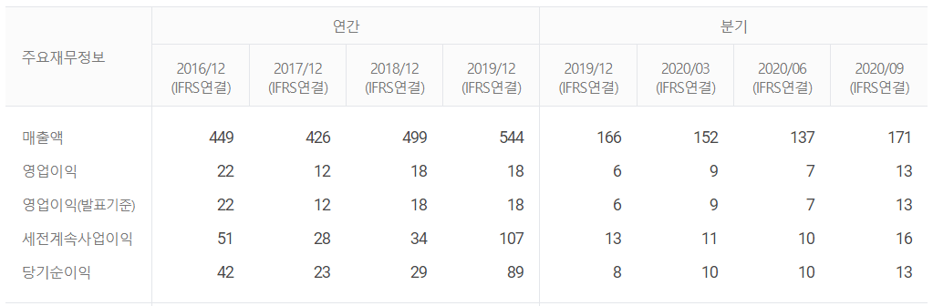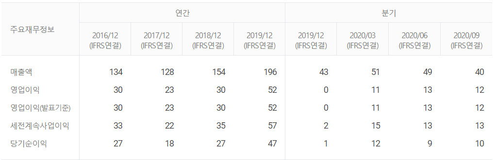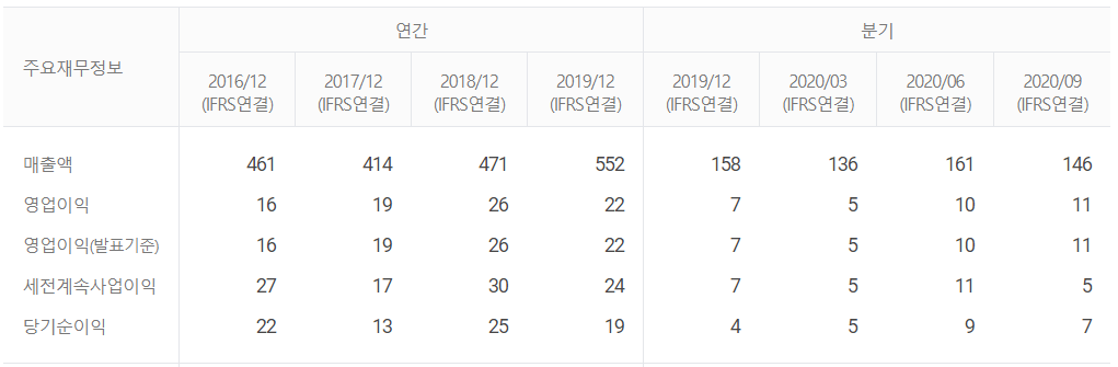 영업이익이 올해로 접어들면서 크게 감사한 것이 눈에 띕니다. 마찬가지로 순이익률도 19년도 마지막분기엔 마이너스 수익률을 기록했네요. 높은 부채비율도 같이 체크해야할 항목입니다.👨
